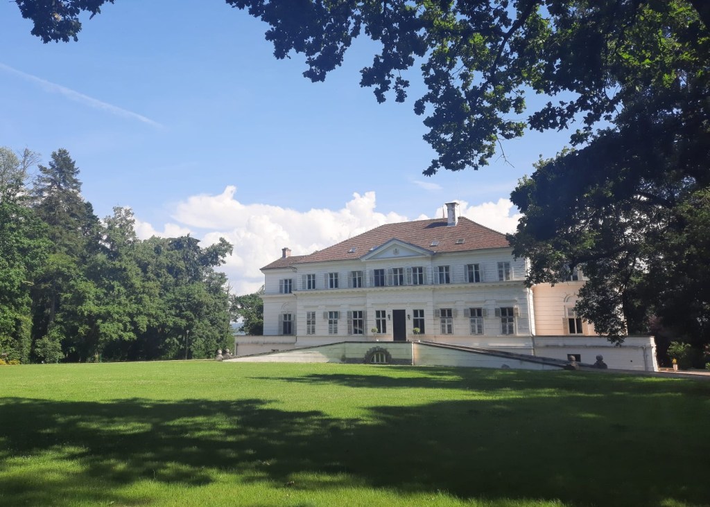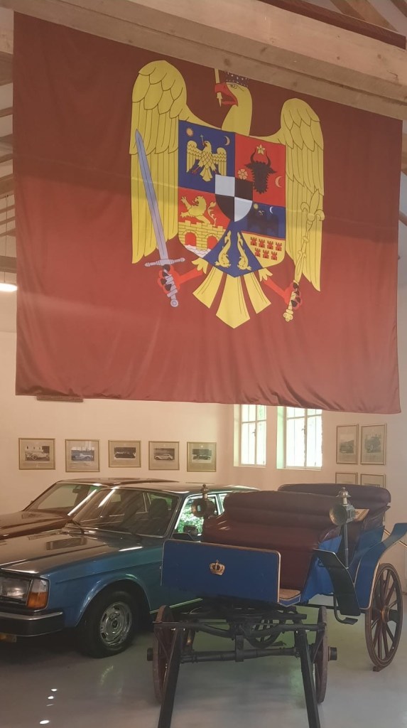 Ne-am plimbat prin parcul de aproape 20 de hectare al domeniului, rânduit și astăzi așa cum l-a gândit, la 1850, Heinrich Nebbien. Încă poate fi văzut stejarul lui Forray, plantat cam în vremea primei menționări scrise a domeniului (1650). Aleile ne-au purtat înspre Micul Pavilion, ridicat la 1780, lângă care am poposit înainte de a ne întoarce la Muzeul Regal Automobilului. Spațiul care, foarte probabil, a adăpostit cai, trăsuri, apoi automobile, a fost regândit de irlandezul David Baxter, cel care a coordonat restaurarea întregului patrimoniu construit. Porțile verzi din lemn cu bolți din cărămidă deasupra, pereții crem, pavajul din piatră cubică și țiglele arămii de la 1850-1900 îi dau un inconfundabil aer „regal”. MS Margareta, Custodele Coroanei române, a avut ideea de a aduce de la Versoix jeepurile atât de dragi regelui și de a muta tot aici și atelierul auto al acestuia, ceea ce s-a întâmplat în 2017. Pe pereți pot fi văzute, în ordine cronologică, fotografiile tuturor mașinilor sale, de la Fordul din 1935 până la BMW-ul 7, cel pe care l-a condus până în 2013. Dintre toate, pentru că aduc un pic cu Untiță al nostru, cel mai mult ne-au plăcut Lincolnul Zephir și Talbotul Lago Record. Cumpărată cu 200 de lei (!) din Bran, trăsura centenară cu același nume, restaurată cu migală în anii 2000, eclipsează Volvo-ul 264 GL, producție 1976, singura mașină originală a regelui rămasă din exil și Mercedes-ul 380 SE din 1982, ambele minuțios restaurate. Sigur, niciunele nu i-au fost atât de prețioase suveranului precum cele patru vehicule G.P. („General Purpose”) – Jeepurile.