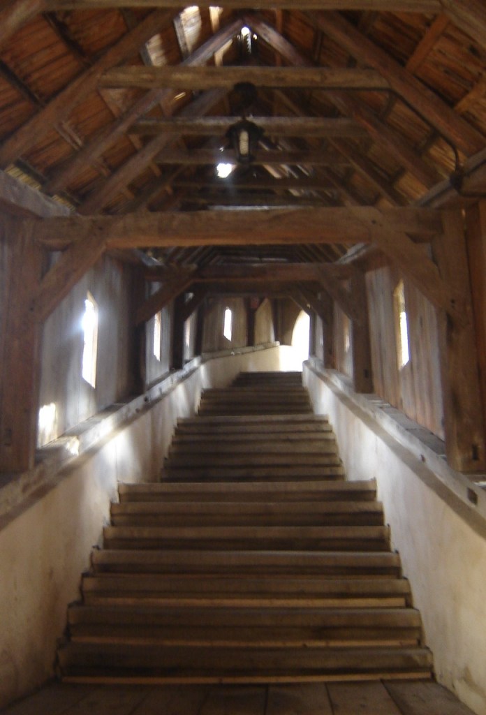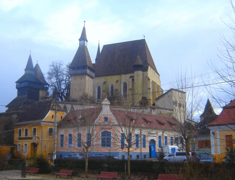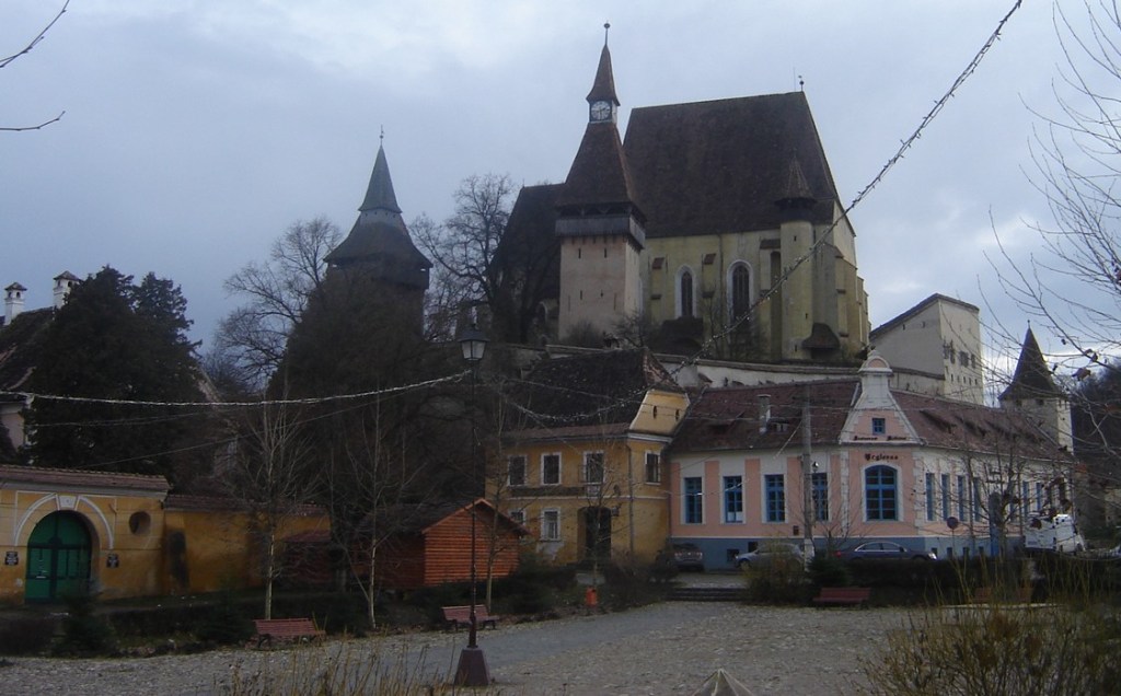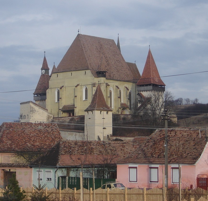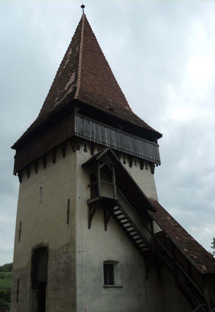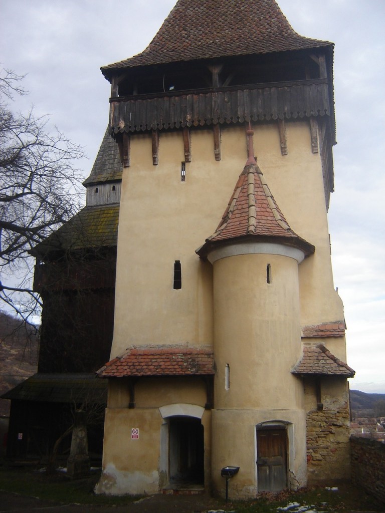 Din casa de pe la 1750, acum pensiune, am traversat piața mare până la intrarea în biserica fortificată, aflată în fostul turn-închisoare, devenit casa intendentului. Am urcat cei 100 de metri acoperiți și vechi de 231 de ani ai scării din lemn. Zidurile Biertanului sunt amintite prima oară în 1486, când regele Matei Corvin a învoit o treime din bărbații satului să rămână pe loc pentru a le apăra. Biserica e înconjurată de trei rânduri de ziduri. Cel de jos, construit în secolele 16-17, e și cel mai recent. Turnul de Poartă și cel al Țesătorilor îl întăresc pe laturile de vest și sud. Construit un secol mai devreme, cel de mijloc, înalt de opt metri, înconjoară complet biserica. Turnul Slăninii, în care localnicii țineau speck-ul și Turnul Vechii Primării, în care se refugiau notabilitățile în caz de primejdie, dar și contraforții drumului de acces îi cresc puterea. Zwingerul era destul și pentru adăpostirea animalelor din sat în caz de asediu. Cel de sus, tocmai din secolul 15, ranforsat cu trei turnuri și un bastion, este și cel mai vechi. Turnul cu ceas mai ține pe trei dintre fețe cadranele orologiului măsurând timpul din 1508! Mecanismul actual e de la 1883, dar clopotul mare tot bate ora, iar cel mic fiecare sfert al acesteia. Turnul de nord-est a devenit mausoleu în 1913, în urma strămutării aici a rămășițelor și pietrelor funerare ale preoților și episcopilor din biserică, din curte și din vechiul cimitir. Bastionul de est face legătura cu turnul catolic, care și-a luat numele de la cei care, alegând să nu treacă la religia luterană, au avut nevoie și au primit un loc de închinare. Încă mai păstrează urmele frescelor și scara care duce la platforma de apărare. O singură dată au cedat zidurile, în timpul războiului curuților, când biserica și mormintele au fost jefuite în căutare de comori.