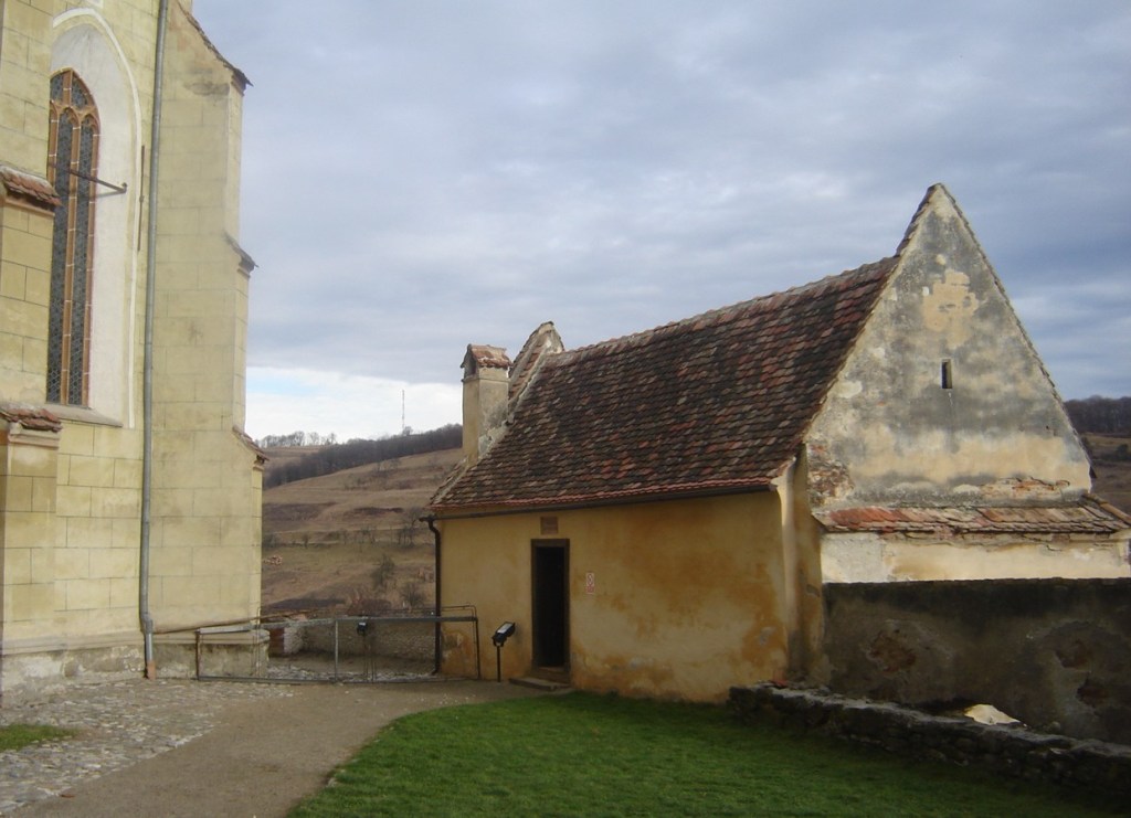 No, Ronule, ai mai văzut tu așa ceva? Am zis ca Ilarion Ciobanu și al său „No, Bobule…” din Profetul, aurul și ardelenii 😊. Apăi Ron al nostru, venit tocmai din Trinidad (și Tobago), nici zăpadă nu mai văzuse, că pe insula aflată un pic peste Venezuela gradele Celsius sunt cam 27,8 tot anul! I-am zis să pună mâna pe cărămida veche de cinci secole, să ne mândrim temperat-continental și noi: aveți voi așa ceva? Mirându-se sincer de zidurile bine făcute, încă în picioare, ne-a zis că și la el acasă a fost un fort, de pământ și lemn, care trebuia să păzească intrarea în Portul Spaniei cu cele cinci tunuri din dotare. După ce britanicii au luat insula de la spanioli (Columb ajunsese aici în 1498, cam odată cu ridicarea Biertanului!), Fort Andres a devenit, printre altele, căpitănia portului, apoi muzeul orașului expunând și câteva dintre tunuri. Am ieșit prin portalul vestic, pe ușile pentru femei, fete și copii, pe sub blazoanele lui Ladislau II (1490-1510) și Ioan Zapolya (1510-1540), stema Scaunului Mediaș și cercul, aparent otoman, cu o stea cu șase colțuri și o semilună. Am trecut de ușa sudică, pentru restul lumii, și am ajuns la bastionul estic: închisoarea matrimonială (un pleonasm după unii…) sau „Casa Împăciuirii”, în variantă soft. Cuplurile care voiau să divorțeze erau ținute aici două săptămâni într-o cameră cu o masă, un scaun, un pat, o farfurie, un tacâm, o cană. În aproape 400 de ani, un singur cuplu a mai divorțat după „împăciuire” (trebuia să existe și marja de eroare)! În punctul ăsta, Ron al nostru, venit nu doar să facă revelionul la Biertan, ci și să-l facă împreună cu prietena lui româncă, s-a speriat o țâră și ne-a întrebat dacă și acum e tot așa 😊. S-a mai relaxat când i-am zis că suntem într-o țară UE, cu democrație domestică solidă și că, oricum, ăla era un obicei săsesc…