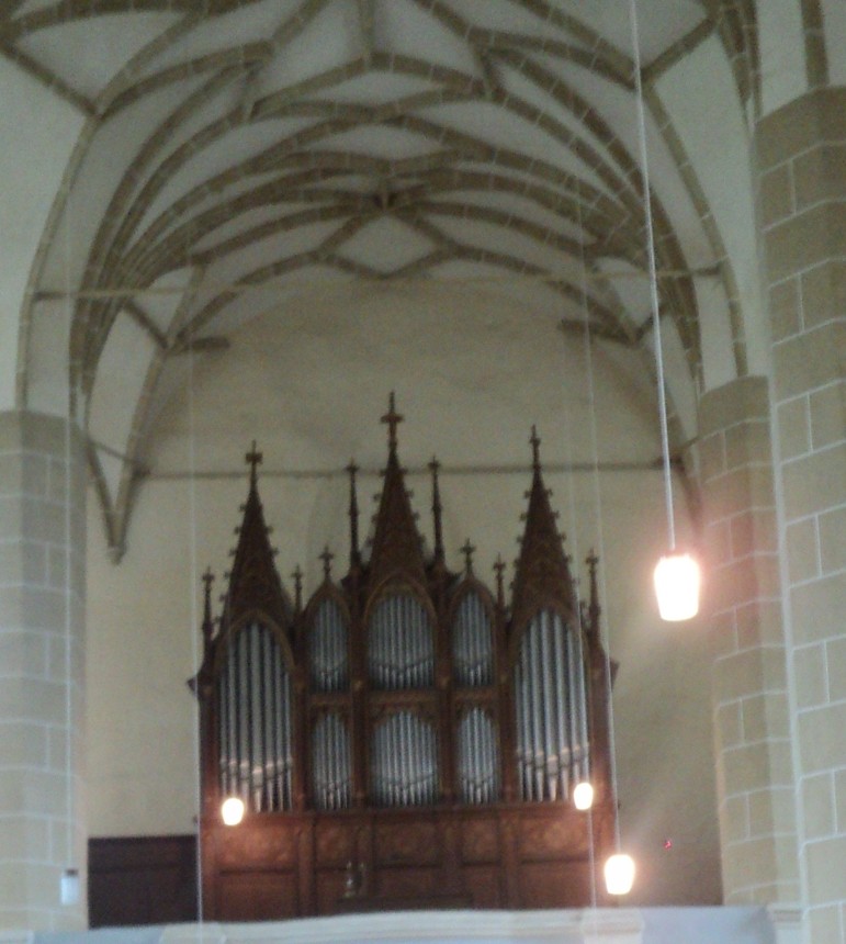 Preotul Johannes din Berthelm slujea, la 1283, în biserica din care au mai ajuns până la noi două chei de boltă și un fragment de nervură. Indulgența primită în 1402 de la papa Bonifaciu IX a fost prima sursă de fonduri pentru ridicarea bisericii gotice, începută în vremea magistrului Martinus Scheser (1493-1502). Inițial catolică, biserica a luat numele Fecioarei Maria, pe care l-a păstrat și după trecerea la confesiunea luterană. Inscripția de pe arcul corului spune că lucrările s-au încheiat în 1522, în timpul preotului tot Johannes, dar Baccalaureus, secondat de nepotul său, magistrul Lucas. Am intrat în biserică prin portalul de nord, pe ușa rezervată preoților, prezbiterilor și familiilor lor, bărbaților vârstnici și, numai la nunți și botezuri, tuturor oaspeților. Profesorii, coriștii, băieții și bărbații tineri intrau pe ușa de turn din nord-vestul bisericii. Altarul a fost creat de meșteșugari din Nürnberg și Viena, care au pictat în treizeci de ani (1483-1513) cele 28 de scene din viața lui Isus Hristos și a Fecioarei Maria. Amvonul gotic renascentist a fost sculptat de meșterul Ulrich din Kronstadt dintr-o singură bucată de piatră (1523), iar cristelnița, și ea din piatră, e tot de atunci. Stranele din lemn de tei au fost făcute de Johannes Reichmut (1514-1523) și tot el a măiestrit și ușa din lemn de stejar cu intarsii a sacristiei. Bine că era deschisă, altfel nu știu cum răzbeam sistemul complicat cu 19 încuietori, patru deschise cu cheia, celelalte 15 cu manivela! Manufacturat de meșteri locali la 1515, mecanismul funcțional și astăzi a fost premiat la Expoziția Mondială de la Paris din 1900! Orga făcută de maestrul vienez Karl Hesse e din 1869, dar sigur mai fusese una, la care a cântat organistul Bartholomäus în 1523!