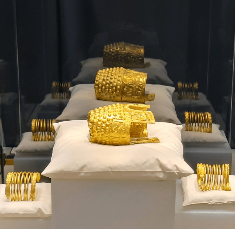 Scăpat din incendiul palatului Universității bucureștene, tezaurul e reparat temeinic de Paul Telge (1884). Anul 1900 îl găsește la Paris, în Sala Orfevrăriei antice de la Luvru, în cadrul Expoziției Universale. Trece în liniște prin a doua parte de Art Nouveau, dar intrarea țării în Primul Război Mondial îl va pune din nou pe drumuri. Din Moldova presată de armatele Puterilor Centrale, Cloșca și puii săi de aur vor pleca în vara lui 1917, alături de aurul Băncii Naționale și de alte obiecte și documente ale unor instituții publice sau particulare, în Rusia țaristă. Care, după câteva luni și o Mare Revoluție Socialistă din Octombrie (sărbătorită în noiembrie), va deveni URSS și-l va returna, absolut surprinzător, României, în 1956! Membru al delegației trimise să-l readucă în țară, Tudor Arghezi, care-l văzuse în București cu 60 de ani mai devreme, „în copilărie, la vârsta de 16 ani”, avea să disoneze cognitiv încercând să explice decizia total neașteptată în a sa „Lume veche, lume nouă” scriind despre ceremonia din sala Cavalerilor Ordinului Sf. Gheorghe a Kremlinului, în care „contrastul între vremuri era emoționant… Între umbrele țarilor de altădată răsunau cuvântările Republicii Socialiste”. Ne-am uitat cu mare atenție împrejur, doar s-o ivi un bolovan mai strâmb pus peste vreo comoară negăsită. Am urcat scările deasupra locului, dar n-am zărit nimic care să ne facă să punem mâna pe lopată 😊. Valea Urgioaiei și, mai ales, drumul de Buzău ne-au adus aminte că aici făcusem doar un popas. Pentru că erau deja, ba chiar trecute, ceasurile prânzului, am pornit spre Piața Artizanilor. După o cafea cu covrigi de Buzău în Sărata Monteoru, ne-am bucurat de cei 32 de kilometri abia asfaltați ai drumului (DJ203G) peste deal, spre Berca. Cum am parcat, ne-am repezit gourmet la cârnații de Pleșcoi, micii de mangaliță și langoși. One beer later, am remarcat printre artizani Ferma Cățean și brânza sa fabuloasă, dar și Șofranul de Buzău, măcar la fel de bun precum cel de San Gimignano!