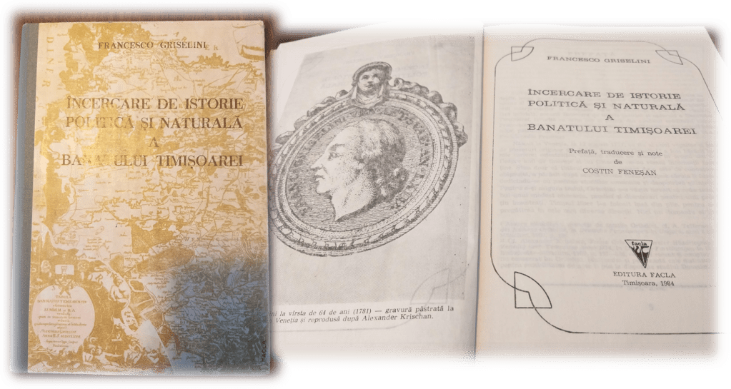 În 1774, acesta a pornit într-o misiune de explorare a Banatului în serviciul unei administrații imperiale care dorea să cunoască până în ultimul amănunt și să valorifice sustenabil (am zice azi…) provincia aflată de aproape șase decenii în stăpânirea sa. După doi ani și jumătate, Griselini a publicat o lucrare, monumentală pentru vremea ei, „Încercare de istorie politică și naturală a Banatului Timișoarei”, în care a descris cu minuțiozitate locurile, istoria, dar și resursele lor, oamenii și obiceiurile lor. L-am citit cu încântare în ediția din 1984 tipărită la editura Facla din Timișoara și totdeauna când zic de Banat îmi vin în minte omul și cartea lui.