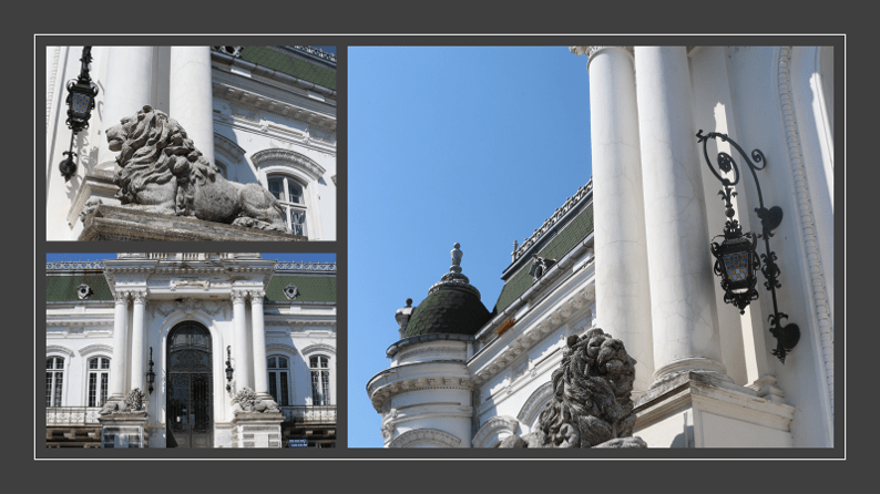 Leii care veghează intrarea principală a maiestuoasei clădiri ridicate în stil neo-clasic francez cu influențe ale arhitecturii românești de început de secol 20 stau mărturie pentru puterea proprietarului, Ștefan Marincu, unul dintre oamenii cei mai bogați ai țării.