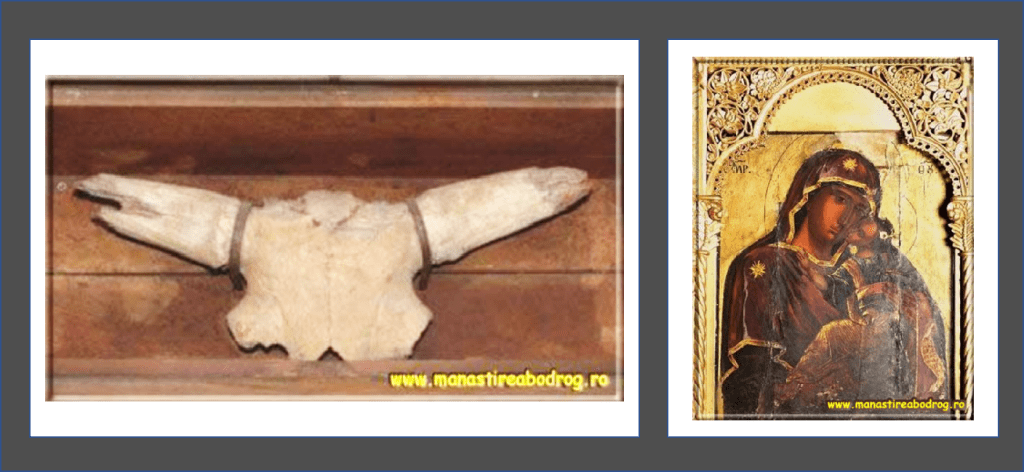 I s-au făcut ochii cât cepele și, după ce s-a întremat cât să-și facă semnul crucii, a pornit a mâna cireada spre sat mai repede ca niciodată strângând la piept Icoana Făcătoare de Minuni a Maicii Domnului cu Pruncul Iisus și ținând în mâna cealaltă comoara. Cu galbenii găsiți de Hodoș puteau să-nceapă ridicarea bisericii de piatră, că lemnul celei vechi începuse să se strice de ceva vreme. Iar icoana și coarnele mândrului taur aveau să-și găsească locul de cinste în noua și trainica biserică.