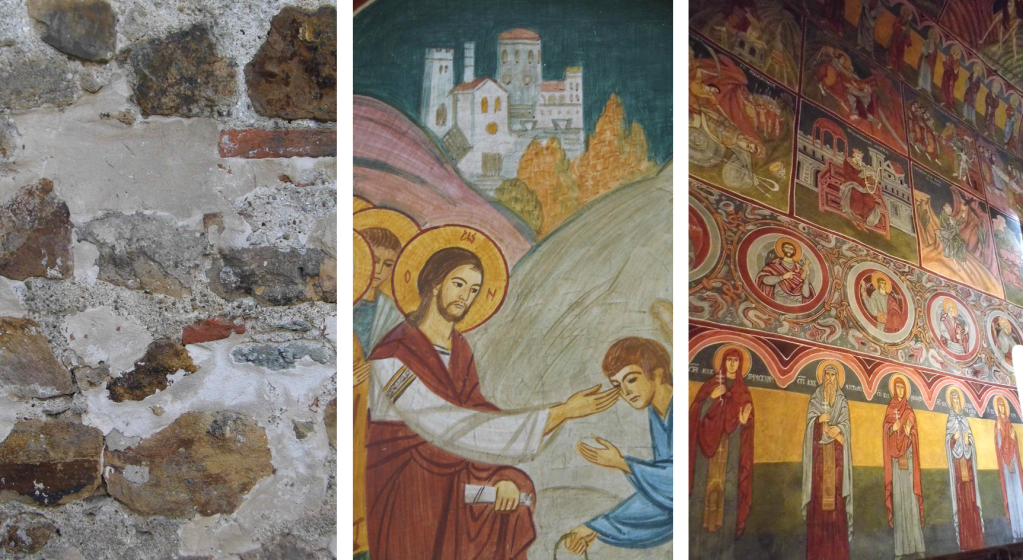 Zice legenda că galbenii s-au terminat când mai era de tencuit doar peretele dinspre miazănoapte. Și de-atunci așa a rămas, poate spre supărarea viețuitorilor, dar sigur spre bucuria privitorilor care pot vedea astăzi atât măiestria meșterilor constructori medievali, cât și urmele istorice din vremea romanilor, zidul păstrând cărămizi cu ștampila legiunii a V-a Macedonica. La 1658, Nicodim Diaconul a pictat pereții bisericii, opera sa fiind restaurată secole bune mai târziu de At. Damian și C. Cenan (1938-1940), apoi de Adriana Scărlătescu și Marius Oprea (2009-2010).