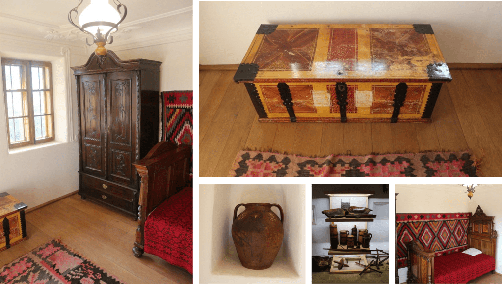 Traiul bun de atunci al chiojdenilor se vede și în casa Izbășoilor. Ridicată pe la jumătatea secolului 18, aceasta inspiră ceea ce se cheamă azi sustenabilitate. Beciul dă temelia unei case făcute să țină și să-i susțină pe cei care o locuiesc. Zidurile din piatră de râu sunt atât fundația solidă pentru odăile familiei, cât și locul în care se păstrează proviziile bogate. Deasupra, grinzi din lemn de stejar masiv strâng pereții din cărămidă și piatră ai celor patru încăperi pentru locuit frumos decorate cu stucaturi. Până la ele urcă treptele către foișorul ai cărui stâlpi sunt și ei frumos ornați cu coarnele berbecului, care păzește casa și-i asigură prosperitatea. Surprind blazoanele care-i dau și numele, mai ales vulturul bicefal, despre care istoricii zic că ar fi al familiei Cantacuzino, dar, la fel de bine, ar putea fi legat și de Bizanțul imperial sau de familia albaneză Kastrioti și cel mai strălucitor reprezentant al ei, Skanderbeg.