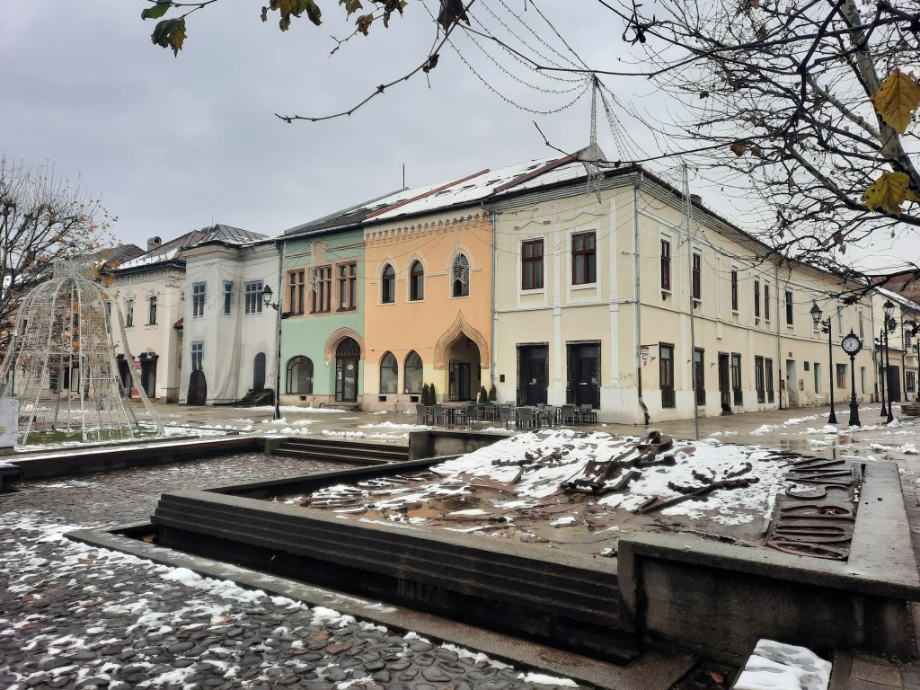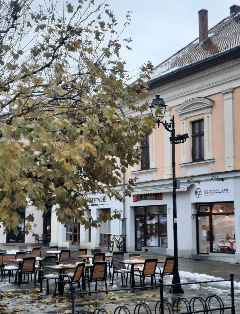 E noiembrie igrasios, numai bine pentru o ciocolată caldă sau o carte bună… A câștigat cartea, ale cărei amintiri în alb și negru ne-au purtat pașii prin centrul vechi. Pe mâna dreaptă, casa Iancu de Hunedoara, ridicată la 1446 de János Hunyadi pentru soția sa, Erzsébet sau Elisabeta Szilágyi, care ar fi și locuit aici după ce voievodul a murit apărând Belgradul, va păstra după renovare aerul secolelor 15-16 și va aminti de vremurile în care orașul liber bătea moneda Regatului Ungariei. Încă niște pași și ajungem în secolul 19, lângă casa în care s-a născut Lendvay Márton Sr., personalitate a teatrului romantic, afirmat pe scena Teatrului Național din Pesta. Dreapta, trecem de mai noua (n-are nici 300 de ani) biserică reformată, apoi ieșim din vechea cetate, fără să ne-ntrebe nimeni nimic, pe Poarta Podului. În acte de la 1599, pe teren poate din 1469, când orașul a căpătat de la regele Matei Corvin dreptul de a se împrejmui cu ziduri de piatră.