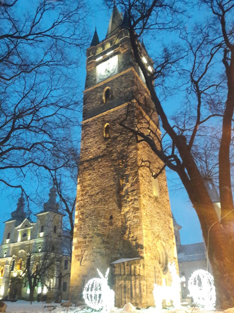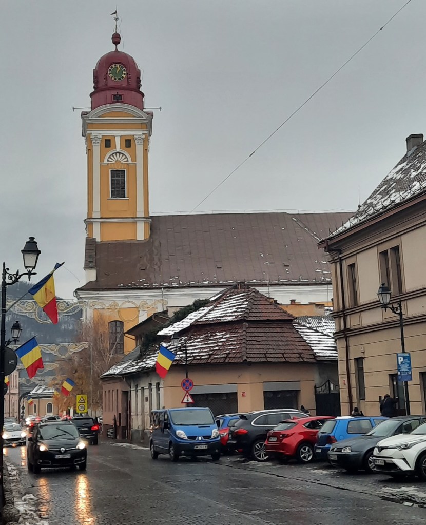 Am pornit de la mândria orașului, Turnul lui Ștefan, cel Sfânt, nu cel Mare. Aproape șapte secole de istorie au rămas în picioare și tot vorbesc cu temeinicia pietrei despre vremurile prin care a trecut și ocupațiile pe care le-a avut urbea, așa cum încă apar înstemate pe zid. Turnul și temeliile vechii biserici stau lângă biserica barocă ridicată de călugării iezuiți, prima pe pământurile transilvane.