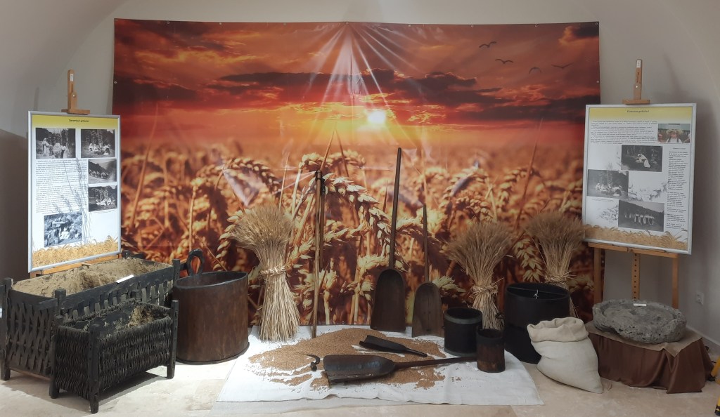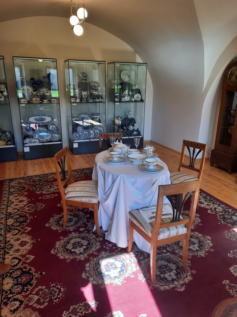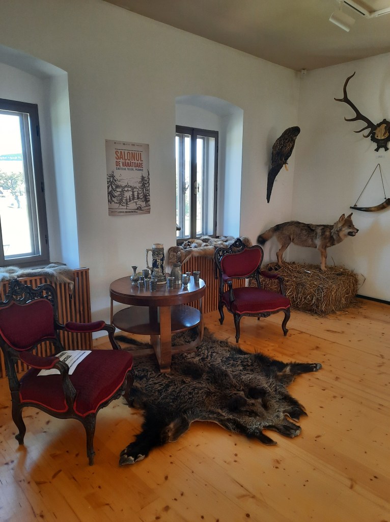 Din drum conacul se vede bine pentru că pădurea care l-a umbrit a lăsat locul platoului util doar odihnei cailor-putere. Deasupra intrării de sub turnul de poartă se află blazonul familiilor Teleki și Haller care au ridicat, la 1752, reședința barocă pe domeniul stăpânit până la urmă de cancelarul Transilvaniei, Mihály Teleki (1634-1690). Deși ar merita, nu trebuie să plătim bilet așa că urcăm la fostele camere de oaspeți, actualul salon de vânătoare al castelului. Lăsăm în urmă semnele taxidermice ale unei pasiuni prea aristocratice și coborâm către fostele magazii, astăzi spații expoziționale, ca să descoperim grâul și pâinea pe meleagurile bistrițene, apoi să ne lămurim dacă porțelanul și ceramica sunt moft sau lux? Aruncăm o privire combinației de mașini de cusut, pendule și contrabas și ieșim în curte. Vizavi, fostele grajduri frumos renovate ne amintesc de vremurile în care oamenii și caii au dus civilizația înainte.