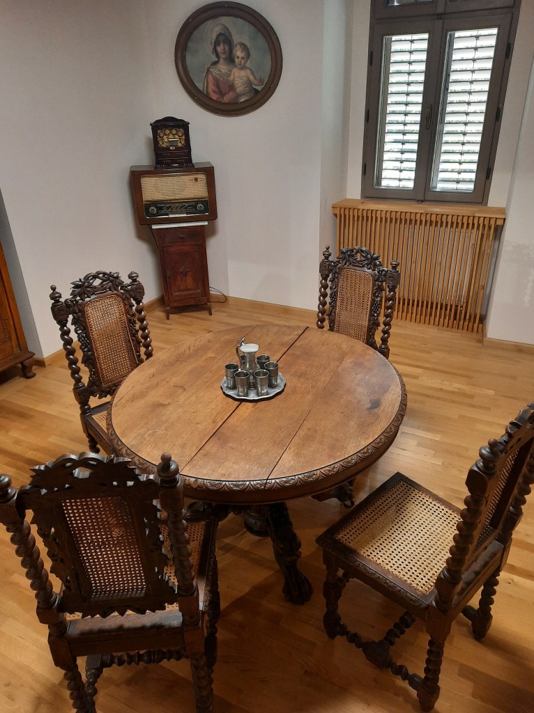 Intrăm în clădirea principală mai puțin ceremonioși decât cei trei miniștri care au inaugurat-o în 2022 după cea mai recentă renovare; au mai fost trei, după incendiul din 1823, după revoluția din 1848-1849, cea anii ‘30 fiind o modernizare și extindere în termenii autorizațiilor de construcție de azi. Parchetul de stejar masiv și mobila din lemn-lemn ne întorc în interbelic. Se aude țăcănitul mașinii de scris Olympia și muzica în surdină de la radio, cafeaua așteaptă să fie servită, iar berea face spume în halba care ne urează „Glück, gesundheit, freude”, adică fericire, sănătate și bucurie. Ar merge și o țâră de noroc deși omul fericit, sănătos și bucuros musai este norocos 😊.