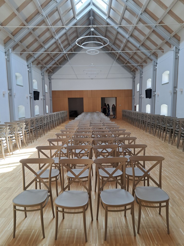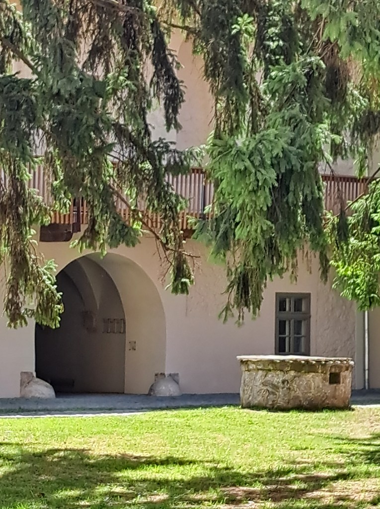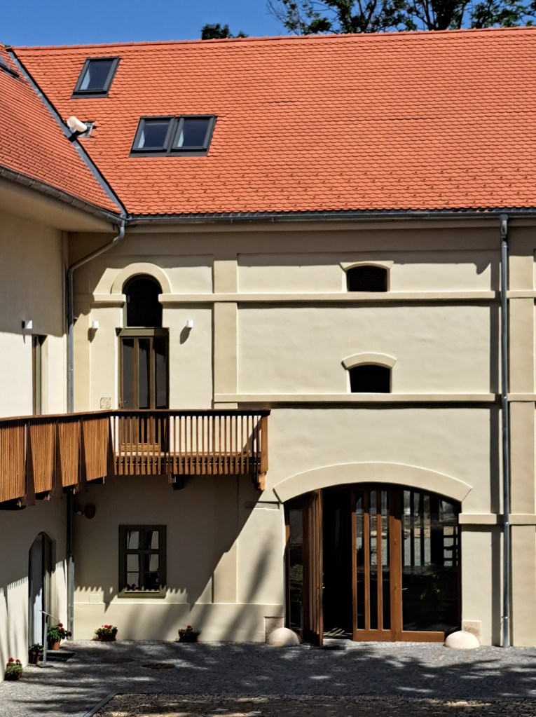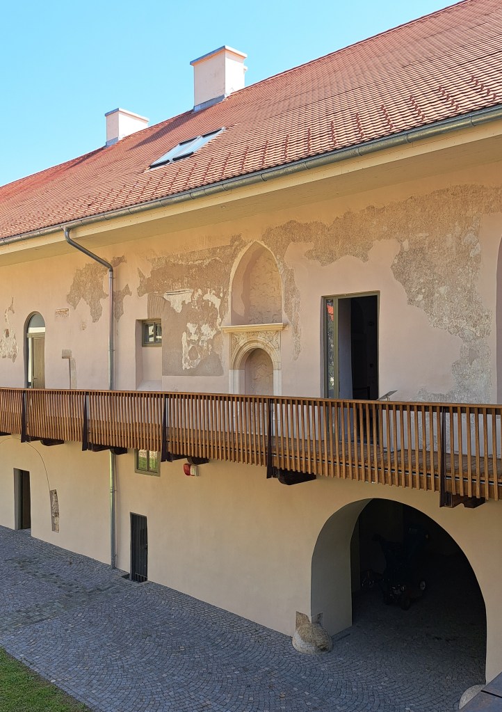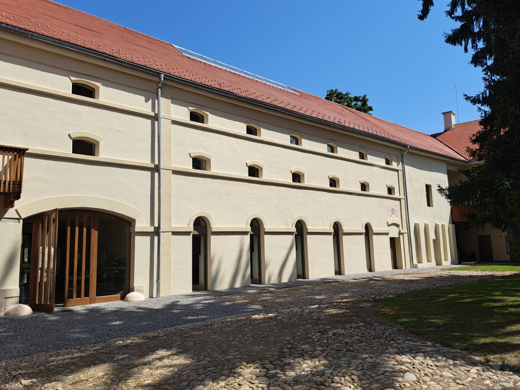 Pe mâna stângă, cum se vine de la Cluj, apare un parc mare și frumos, bine apărat de o incintă care ar putea fi într-o stare mai bună. Probabil va și fi pentru că lucrările de restaurare se observă de cum intrii în parc. Cândva domeniu episcopal, Gilăul apare în documente la 1246, iar castelul în 1428. Zidurile care răsar din iarbă, ale căror pietre au fost mai mult ca sigur folosite la ridicarea sa, vorbesc despre fundații care coboară până la castrul roman Ulpianum, garnizoană pentru Cohors I Pannonia veterana, apoi Ala Siliana. Ne salutăm cu un domn care ne întreabă amabil dacă dorim să vizităm. Dorim, primim tichetele gratuite și lăsăm o mică donație pentru a susține restaurarea. Puteam să lăsăm și caii în grajdul impecabil renovat din stânga intrării prin turnul nord-vestic al castelului, asta dacă veneam călare. Doamna care ne ghidează ne primește bucuroasă în fostul hambar de la etajul aripii nordice și începe să povestească.
