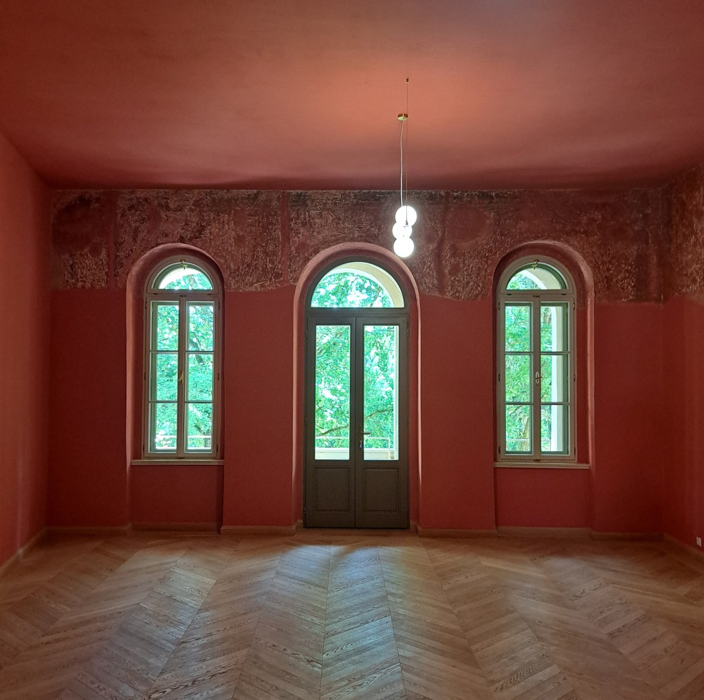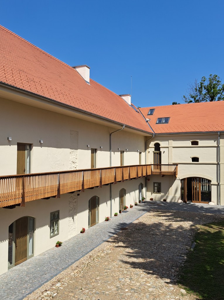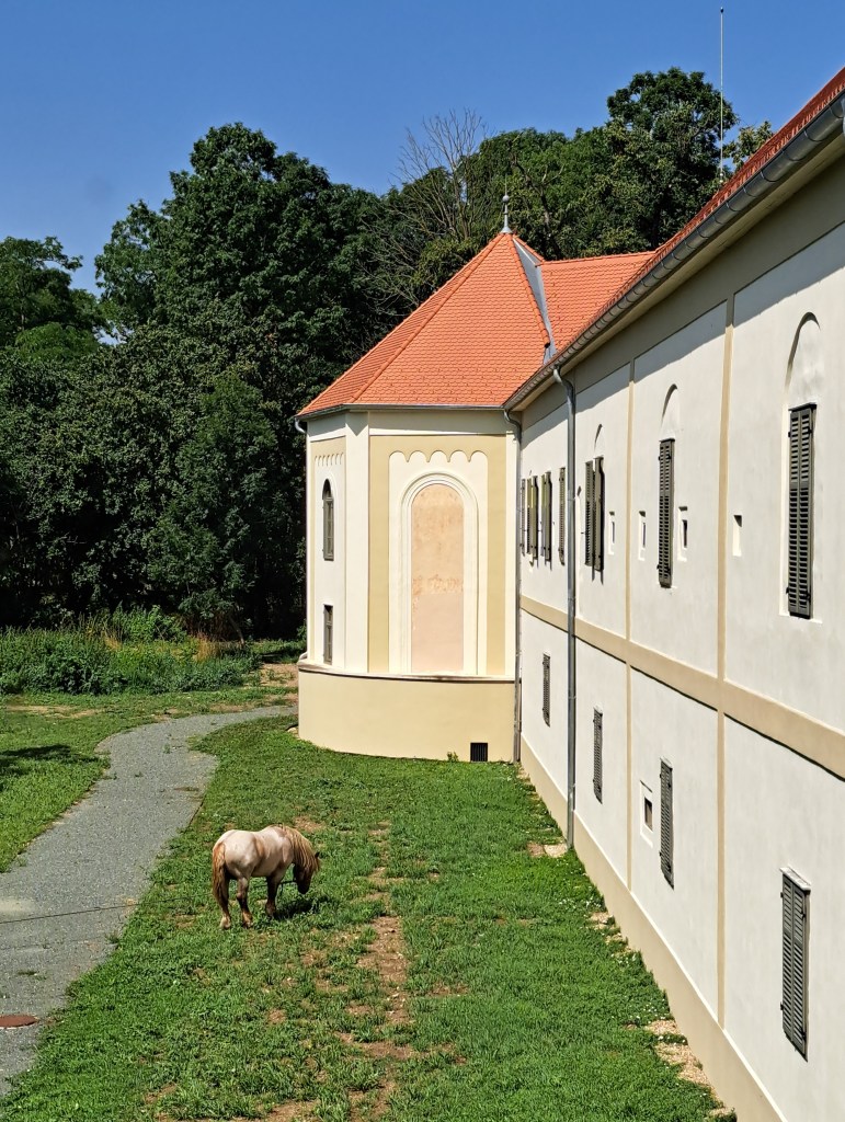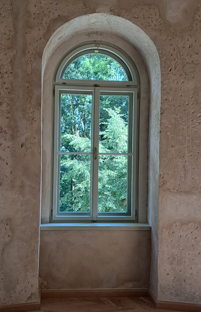 Apar loggia orientată spre grădina englezească – a cărei asimetrie față de ferestre și ușă ne spune că nimeni și nimic nu-i perfect, exact ca-n viață, grajdul mare și hambarul, iar turnul sud-vestic, acum hexagonal, găzduiește noua capelă. Abia renovat, castelul e sever afectat (1861) de incendiul care îi distruge biblioteca, capela și galeria de portrete.