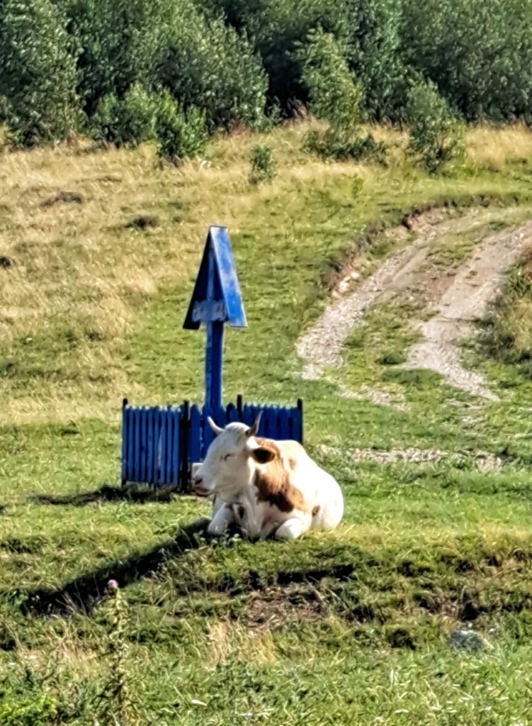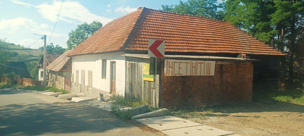 Puteam lua un langoș dintr-o parcare, dar parcă am poftit mai mult la peisaj (mai multe locuri de belvedere n-ar strica!). Am început coborârea spre Abrud pe lângă case moțești și construcții mai noi, fân îmbalotat și pășuni verzi pe care văcuțele pasc liniștite sau doar meditează lângă troița de la drum care-i apără pe cei aflați în trecere pe acolo sau, pur și simplu, prin viață. Pe peretele unei case am citit, scris mare, cel mai convingător îndemn la slow living, intermediarul sustenabil între „las-o mai moale”-le românesc și „keep calm and carry on”-ul englezesc: „ÎNCETINIȚI!!!”.