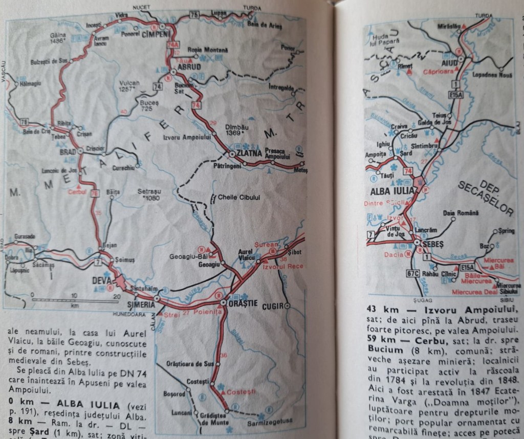 Drumul care trece Apusenii de la est la vest nu-i chiar nou: l-am găsit cu linie roșie în România în automobil, atlasul rutier al României Mari publicat la Brașov în 1938, dar și cu linie punctată în Guide Bleu-ul România – Ghid turistic publicat la editura Sport-Turism, în 1983.