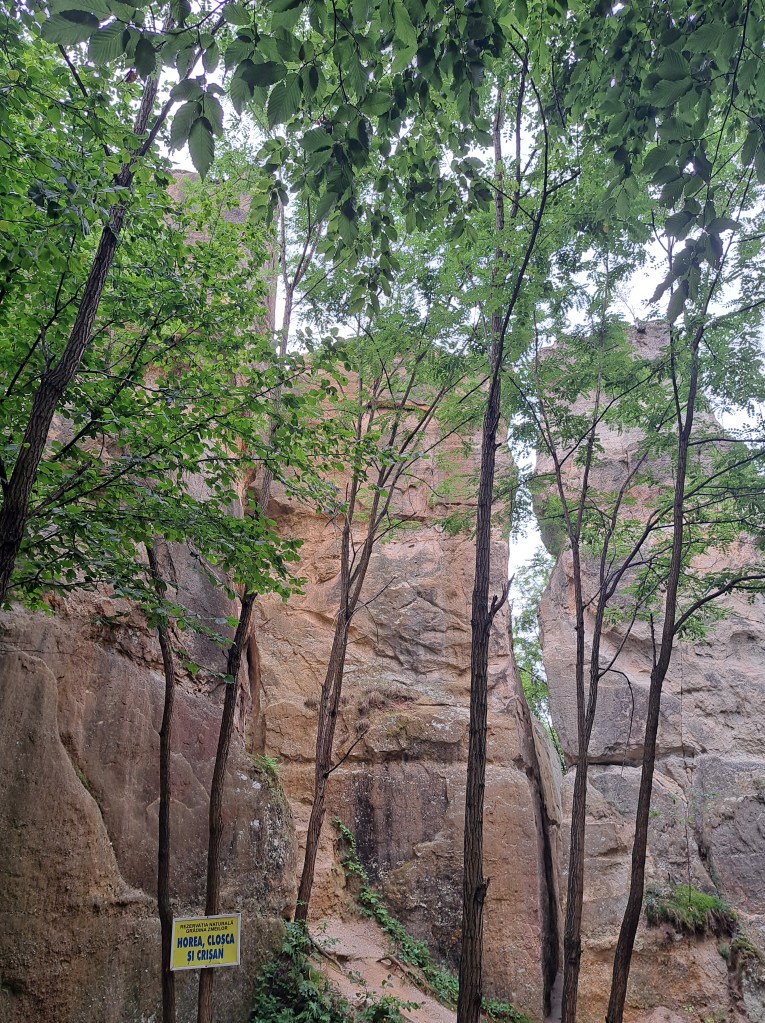 Ajunși în Gâlgău Almașului, prima impresie e că zmeii ăștia trebuie că-s tare gospodari din ce moment ce drumul spre, apoi prin grădina lor arată tare bine! Aleile șerpuiesc pietruit prin făgetul verde foios care străjuiește voios pietrele meteo-formate atât de interesant de ploile care curg, zăpezile care cad și vânturile care bat în zonă. Plus temperaturile care variază îngheț-dezgheț și procesele gravitaționale cu care, din fericire, nu putem și nici nu trebuie să ne luptăm, adaptarea e suficientă. Curățenia e exemplară pentru că există coșuri și atunci de ce ai arunca gunoiul pe jos dacă tot îl poți trimite direct la coș de trei puncte? Sau, cine știe, poate trec zmeii din când în când pe alei și dacă te prind că ai făcut mizerie of-of, măi-măi… Ne-a condus Hămușor Zmeușor, un cățel care, dacă și-ar face testul ADN, sigur ar afla că are un străbunic border collie care, într-o pauză de învârtit oile, s-a amestecat bucuros cu neamurile locului 😊.