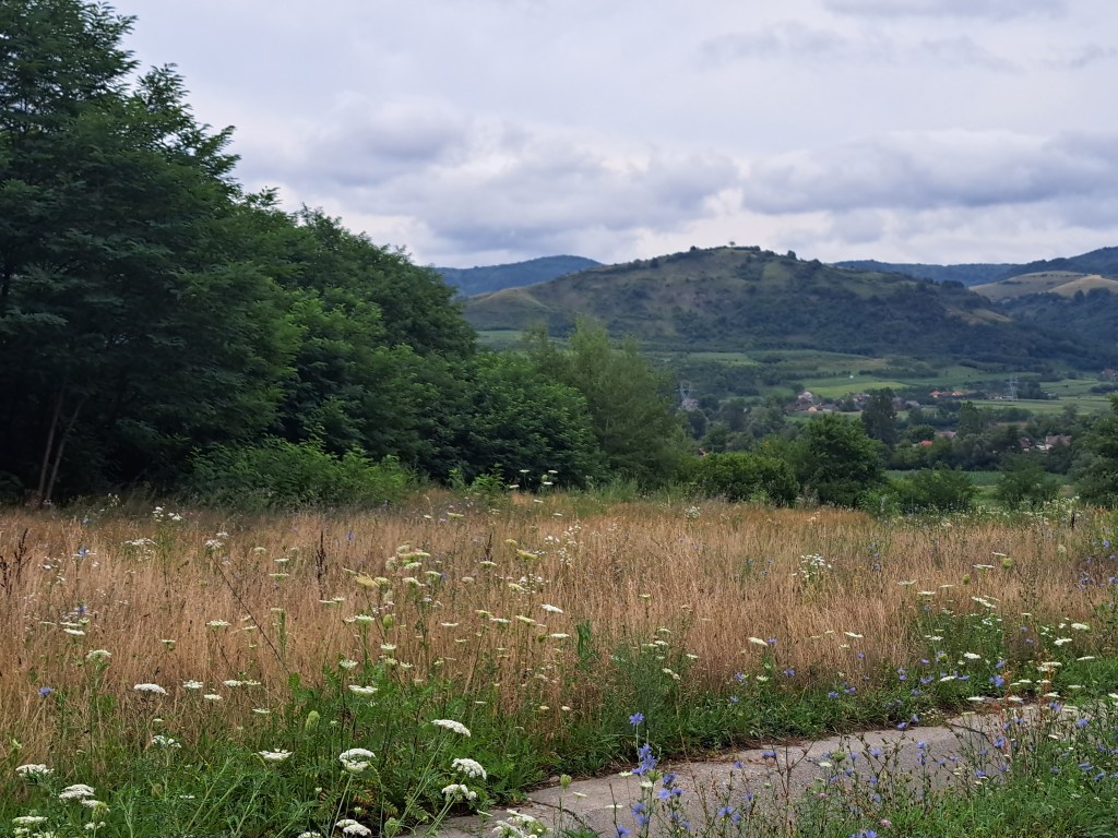 Fiindcă zmeii erau plecați, am urcat și în foișorul lor de unde se vede tare fain Țara Silvaniei. Ni i-am imaginat stând liniștiți la o cafea, încântați că locuiesc într-una dintre cele șapte minuni ale Transilvaniei, bucurându-se de aerul curat și proaspăt privind la Almașul care Gâlgăie liniștit între dealurile verzi și norii îngrășați a ploaie gata să se reverse asupra grădinii îngrijite… La coborâre l-am revăzut pe Hămușor Zmeușor, care ne-a întrebat dacă ne-a plăcut și ne-a îmbiat la o plăcintă a zmeilor, cu bogăție de brânză de burduf, cozi de ceapă și mărar. Trebuie să fi fost taaaare bună dar cum nici zmeoaica bucătăreasă, nici zmeul gospodar nu erau acasă, a trebui să ne mulțumim cu un aperitivo spritz și un fresh de afine, că tot e faimoasă zona pentru ele. Ne-a ocolit furtuna anunțată de buletinul meteo, doar niște stropi prea mărunți ca să ne sperie au picurat și ne-au susurat că e timpul să pornim spre Baia Mare.