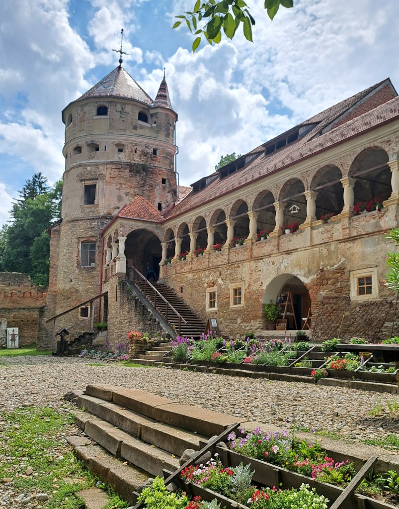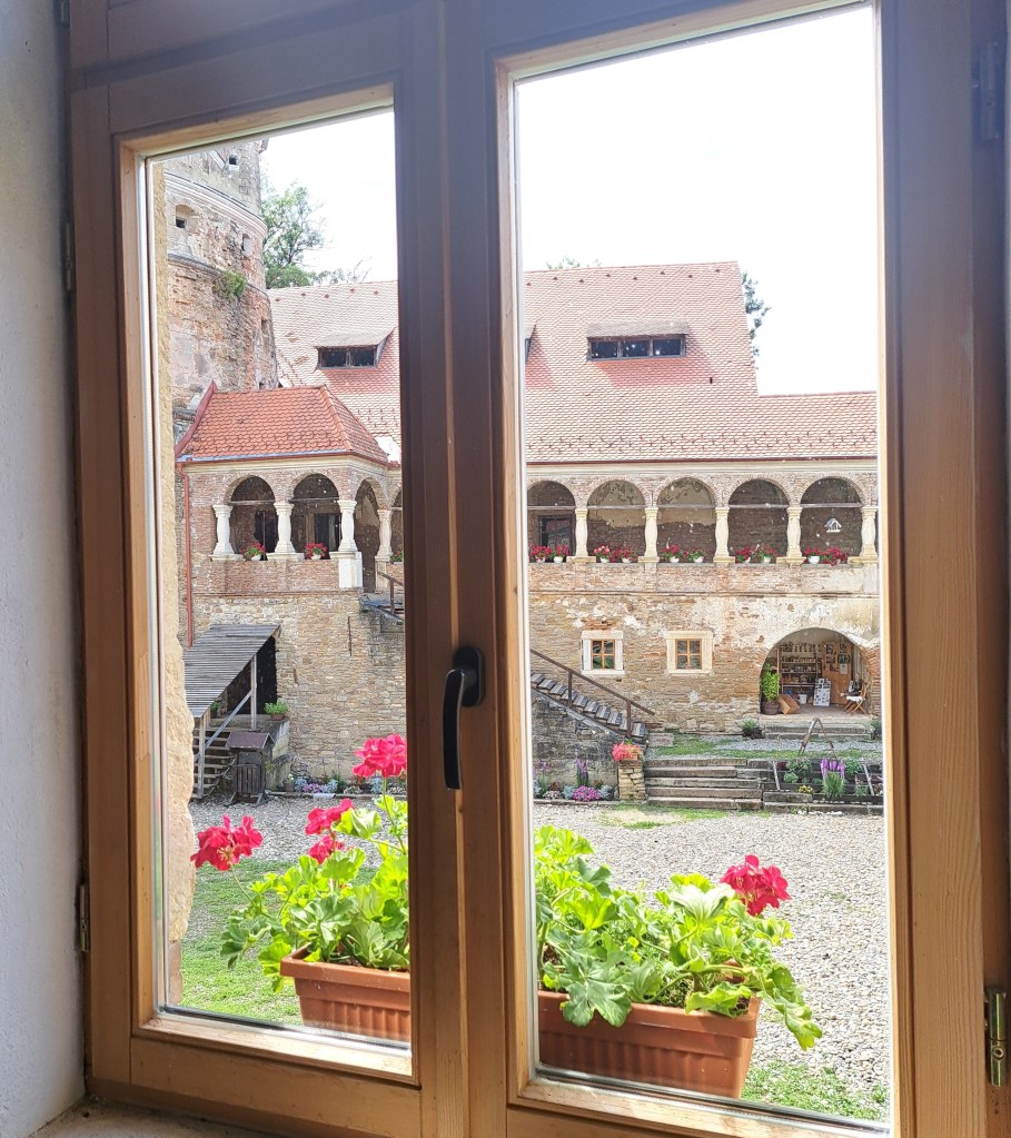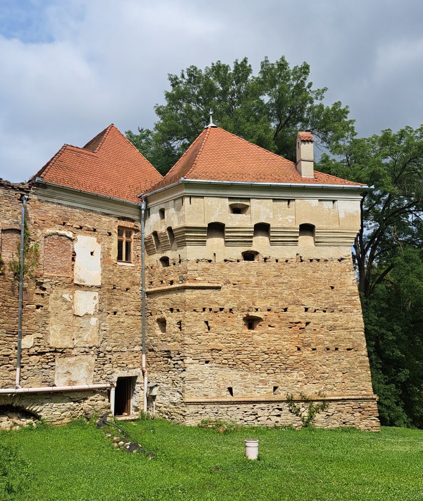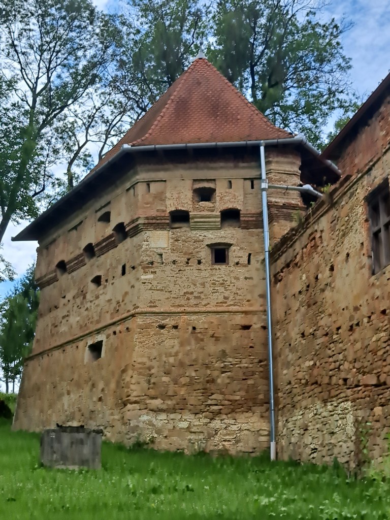 Căutam răspunsul în timp ce savuram tihnit micul dejun la Rivulus, cu dovlecei pane, salată de vinete, pită cu unsoare și ceapă, mniam-mniam 😋😋. Bunătățile astea au fost destule să începem ziua în cea mai bună stare și să căpătăm și răspunsul! Auzisem că s-a redeschis castelul de la Criș. Îl mai văzusem într-un martie înzăpezit, acum douăzeci de ani și plecasem dezolați: arăta tare rău, poate și din cauza vremii (sigur, din cea a vremurilor pe care le-a prins), cărămizile aproape plângeau în zidurile încă rezistând. Dar ne-am și gândit că „dacă l-ar lua cineva…” castelul ar fi putut renaște spectaculos: ne întrebasem atunci cum ar fi fost să-l fi cumpărat Bill Gates, să-l renoveze și să facă un centru Microsoft în Europa Centrală și de Est 😊… Am pornit spre Criș pe (încă) un drum plin de porumb verde și mustăcios, bine crescut la doi metri, pentru că a tot plouat prin Ardeal: „n-am prea avut vară anul ăsta…” oftase recepționera hotelului unde poposisem deunăzi. Spre surprinderea și încântarea noastră, Waze ne-a trimis prin Mediaș, orașul primului nostru city-break 🤗…