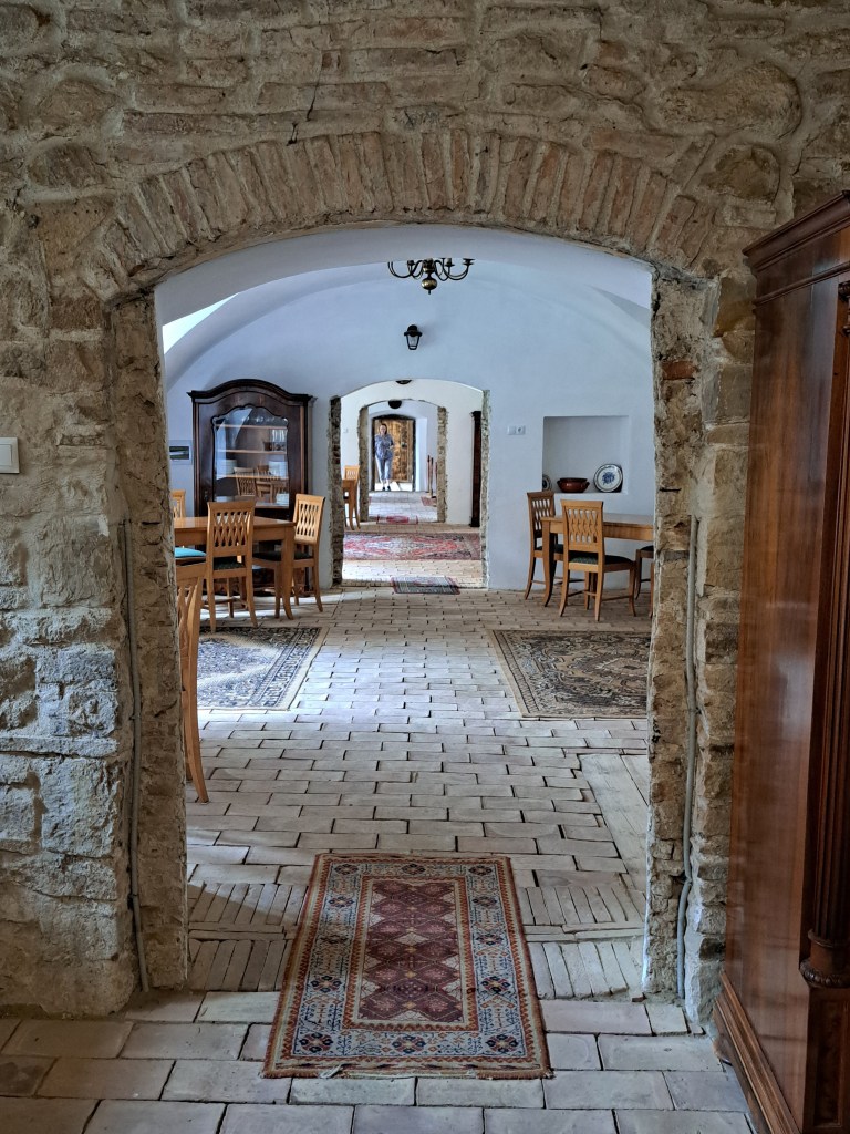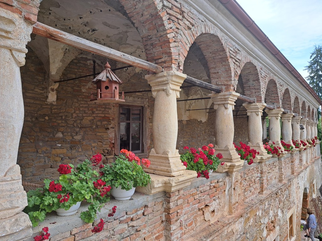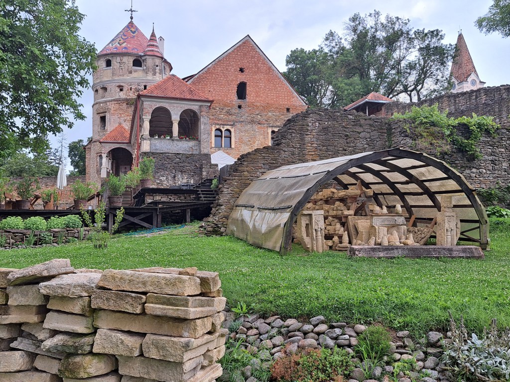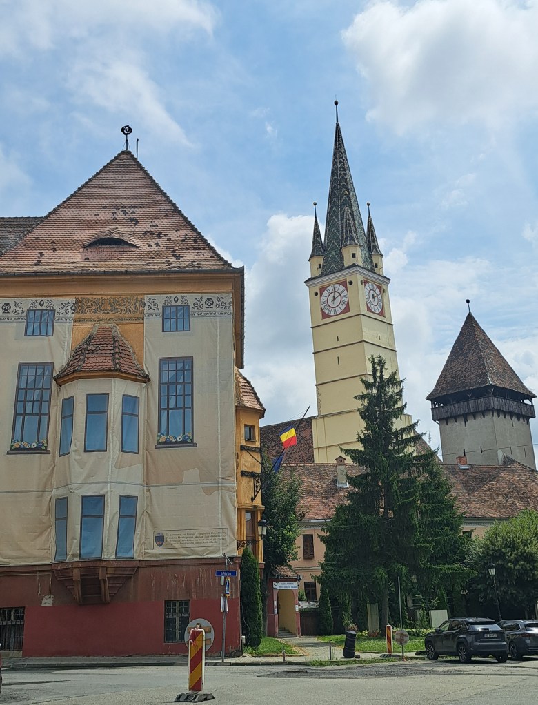 Căutam răspunsul în timp ce savuram tihnit micul dejun la Rivulus, cu dovlecei pane, salată de vinete, pită cu unsoare și ceapă, mniam-mniam 😋😋. Bunătățile astea au fost destule să începem ziua în cea mai bună stare și să căpătăm și răspunsul! Auzisem că s-a redeschis castelul de la Criș. Îl mai văzusem într-un martie înzăpezit, acum douăzeci de ani și plecasem dezolați: arăta tare rău, poate și din cauza vremii (sigur, din cea a vremurilor pe care le-a prins), cărămizile aproape plângeau în zidurile încă rezistând. Dar ne-am și gândit că „dacă l-ar lua cineva…” castelul ar fi putut renaște spectaculos: ne întrebasem atunci cum ar fi fost să-l fi cumpărat Bill Gates, să-l renoveze și să facă un centru Microsoft în Europa Centrală și de Est 😊… Am pornit spre Criș pe (încă) un drum plin de porumb verde și mustăcios, bine crescut la doi metri, pentru că a tot plouat prin Ardeal: „n-am prea avut vară anul ăsta…” oftase recepționera hotelului unde poposisem deunăzi. Spre surprinderea și încântarea noastră, Waze ne-a trimis prin Mediaș, orașul primului nostru city-break 🤗…