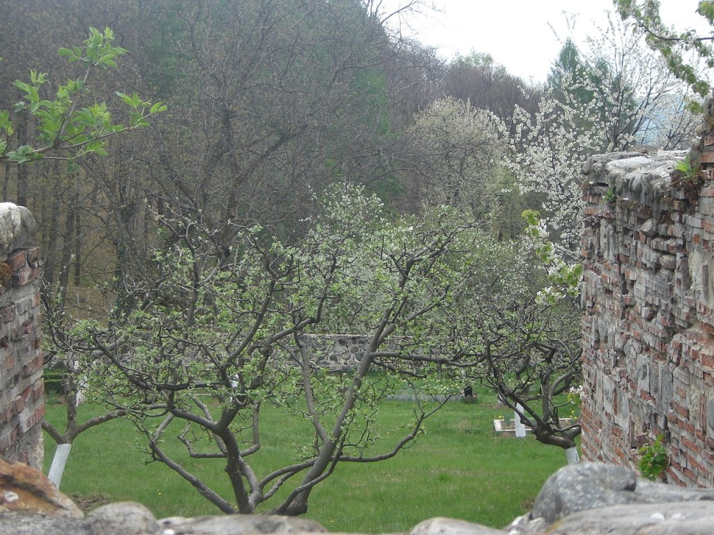 Pe lângă cuhnie și brutărie am ajuns la chiliile cu arcade și foișor, apoi la fântâna lipită de zidul estic și am ieșit prin poarta de lemn în curtea care păstrează urmele bolniței și, mai sus, biserica ctitorită (1696) de doamna Maria, soția lui Constantin Brâncoveanu, zugrăvită de meșterii Preda, Nicolae și Ianache. O mongolie, pardon magnolie, împrimăvărată ne arată florile fucsii pe verdele ierbii grase de care nu se mai satură cele două văcuțe. Revenim în curte, de astă dată pe lângă casa domnească și ne oprim să mai privim o dată foișorul. Tare mândru trebuie să fi fost arhimandritul Dionisie Bălăcescu, în vremea căruia (1725-1753) a fost zidit. Și de scara nouă, frumos împodobită până să se oprească în locul din care să poată arhimandritul privi spre biserică înainte de a ajunge în încăperile stăreției. Sau mai degrabă la cărțile strânse de domnitor în „bibliotecă de hrană dorită sufletească această casă a cărților îmbie înțeleaptă îmbelșugare“, cum zice inscripția de deasupra ușii (1708). Catalogul de la 1791 numără 382 de volume tipărite și 46 de manuscrise (dintre care 115 în românește), de la Odiseea lui Homer (Basel, 1541), însemnările ctitorului Hurezilor și până la O mie și una de nopți, în trei volume îngrijite de Dionisie Eclesiarhul. Pare de necrezut astăzi dar, în 1872, când antreprenorul Pomerantz a reparat întreaga mănăstire, foișorul a fost dărâmat până la temelie și a fost refăcut păstrându-se doar pietrăria cea veche!