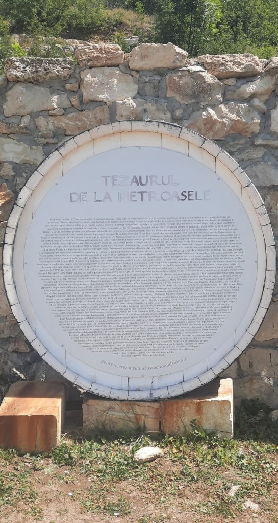 Am aflat târziu sau slow, ca să fim mai trendy, de Piața Artizanilor – Slow Food & Gourmet Hub Buzău, pe numele-i din cartea de identitate. În curtea hanului Moara Veche din Berca urma deja ediția a patra și, cum ne plac locurile frumoase, produsele locale, mai ales cele comestibile (dar nu numai) și susținem „în mod conștient” (fix cum zice reclama), ori de câte ori putem, economia locală, am zis că trebuie să ajungem! Prin zonă mai fusesem la Vulcanii noroioși, Berca îmi era simpatică de când avea echipă în Divizia C și rimam „Foaie verde ca ciuperca, eu țin cu Petrolul Berca” 😊, dar alte motive serioase să mai trecem, darmite să oprim, n-am avut. Am văzut că dacă la un moment dat dăm drumul național pe cel județean, putem ajunge într-un loc aparte, unde a fost găsit tezaurul de la Pietroasa. Am lăsat Clondiru pe dreapta ca să virăm la stânga spre Pietroasele, drept spre deal. Harta lui Alexandru Odobescu ne-a arătat că în prima intersecție mare, dacă mergem tot înainte, intrăm chiar pe poarta principală a fostului castru roman construit pe când Constantin cel Mare încerca să-i țină-n loc pe goți în drumul lor spre imperiu. Tabla maro cu Cloșca cu Puii de Aur indică tot „Înainte”, mai la deal sau, poate, „La Ioana” de pe săgeata cu cazarea. Intrați în Pietroasa Mică, doar Cloșca rămâne cu majusculă pe tabla care se albăstrește: or fi și puii de aur, da-s prea mici ca să apară și ei majusculoși. Cotim pe strada (cum altfel) Tezaurului și, după încă 500 de metri, parcăm vizavi de locul în care se presupune că Ion Lemnaru și socrul său, Stan Avram, au găsit tezaurul.